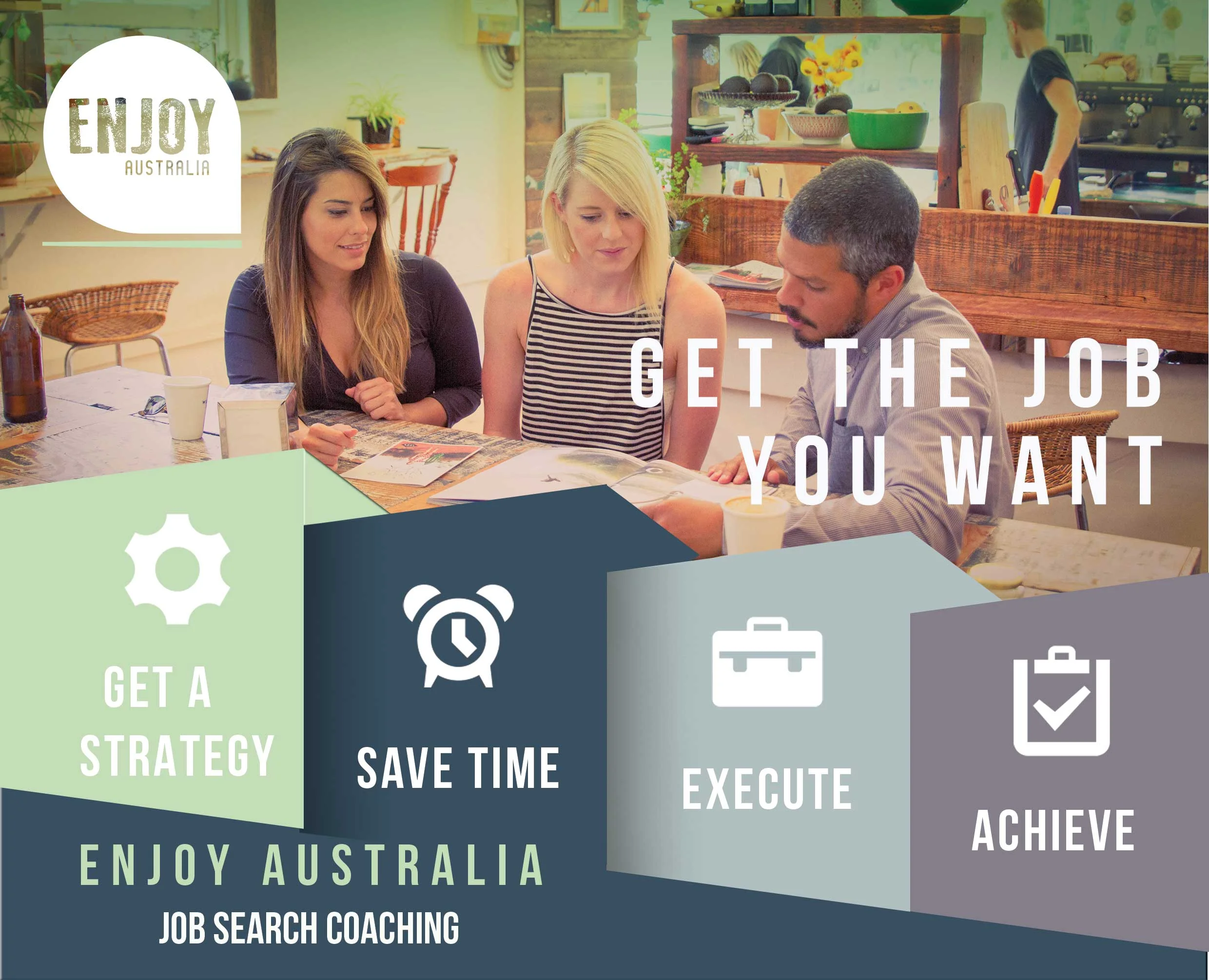 GET THE JOB YOU WANT: Programa de coaching na busca de trabalho especifico para estudantes que queiram trabalhar na Australia em suas áreas de formação.